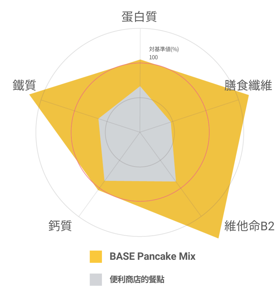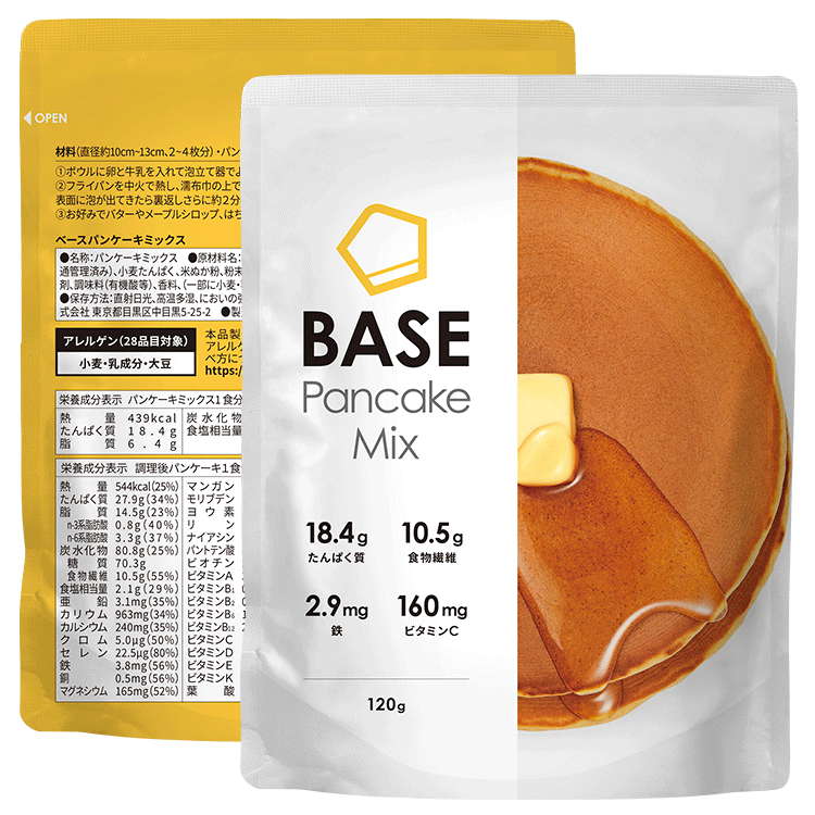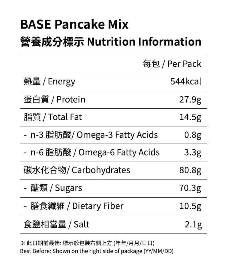 對於 BASE Pancake Mix,請參閱產品詳細資訊頁面,您可以找到其配方。