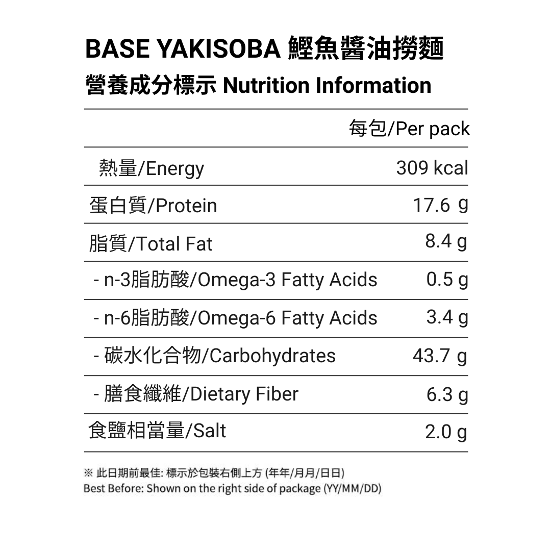 BASE YAKISOBA 日式炒麵所含營養素